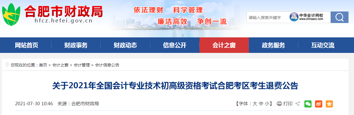 1、合肥市财政局:2021初级考试取消,自8月20日起集中办理退费事项。考试报名费将按考生报名缴费途径,全员全额退还。