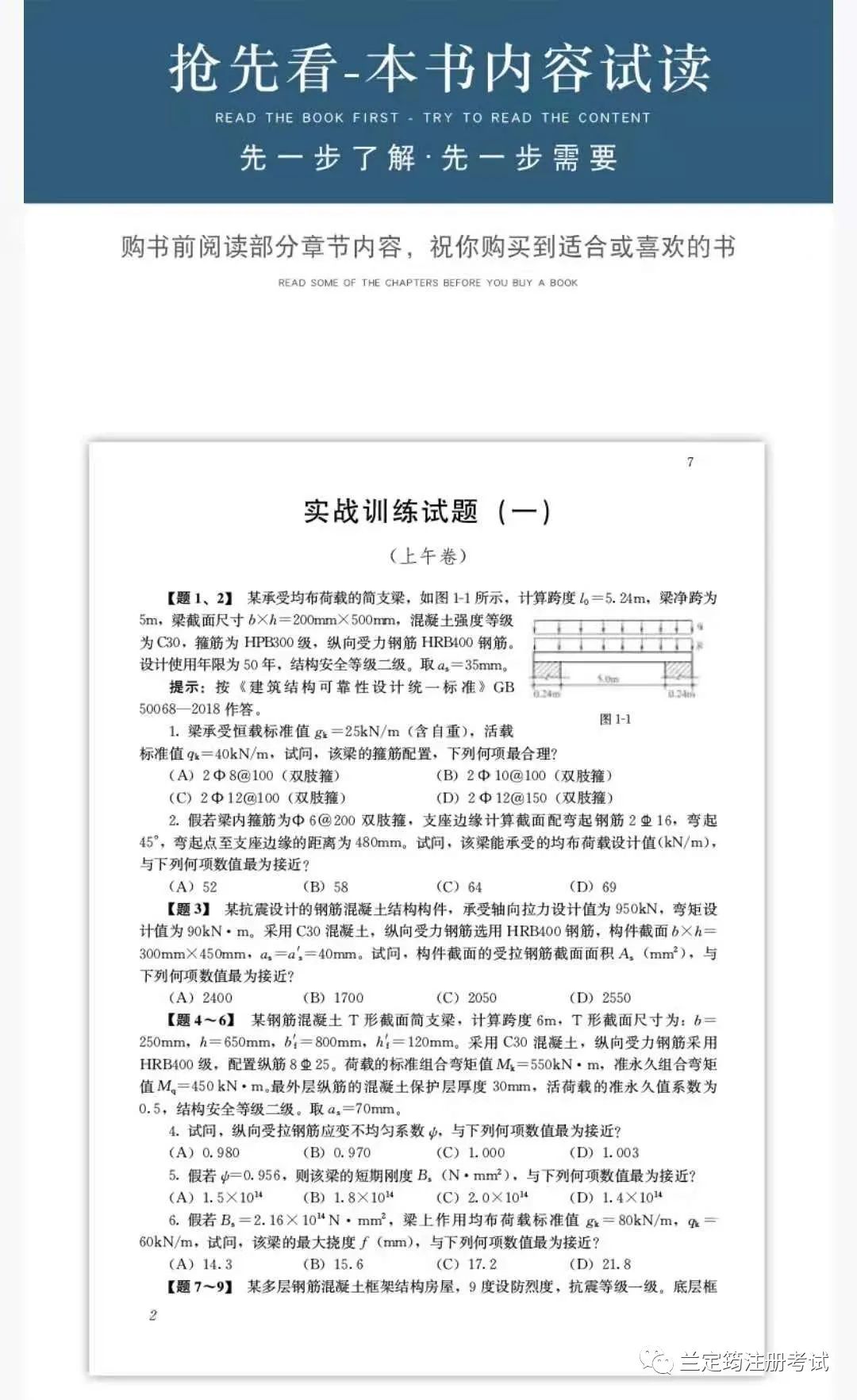 各位同学,一级注册结构工程师专业考试考前实战训练(含历年真题)(定价168.00元)上市了,图书增加了专题精讲篇,配有增值服务,增值服务为2020年一级注册结构专业考试最新考题。