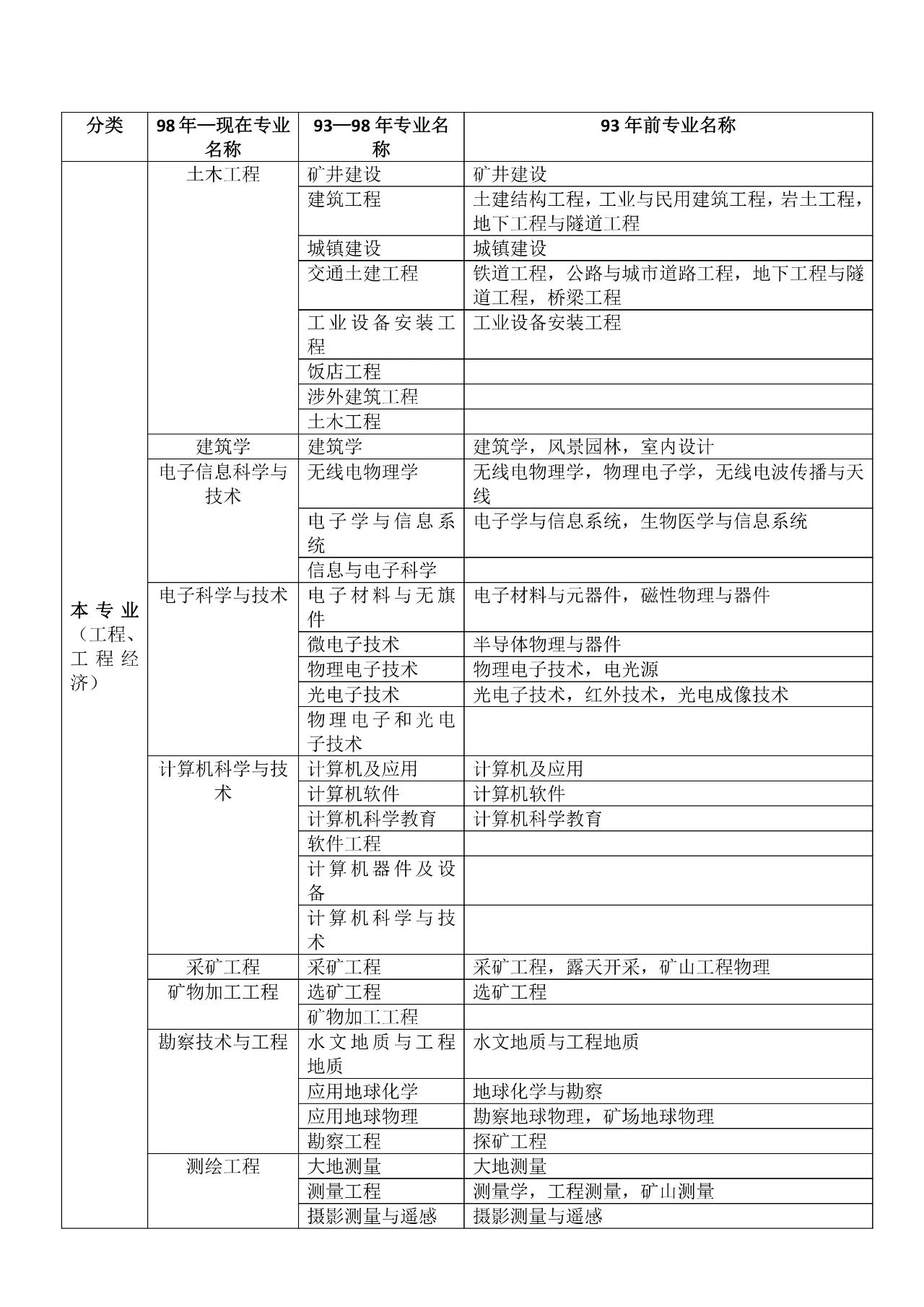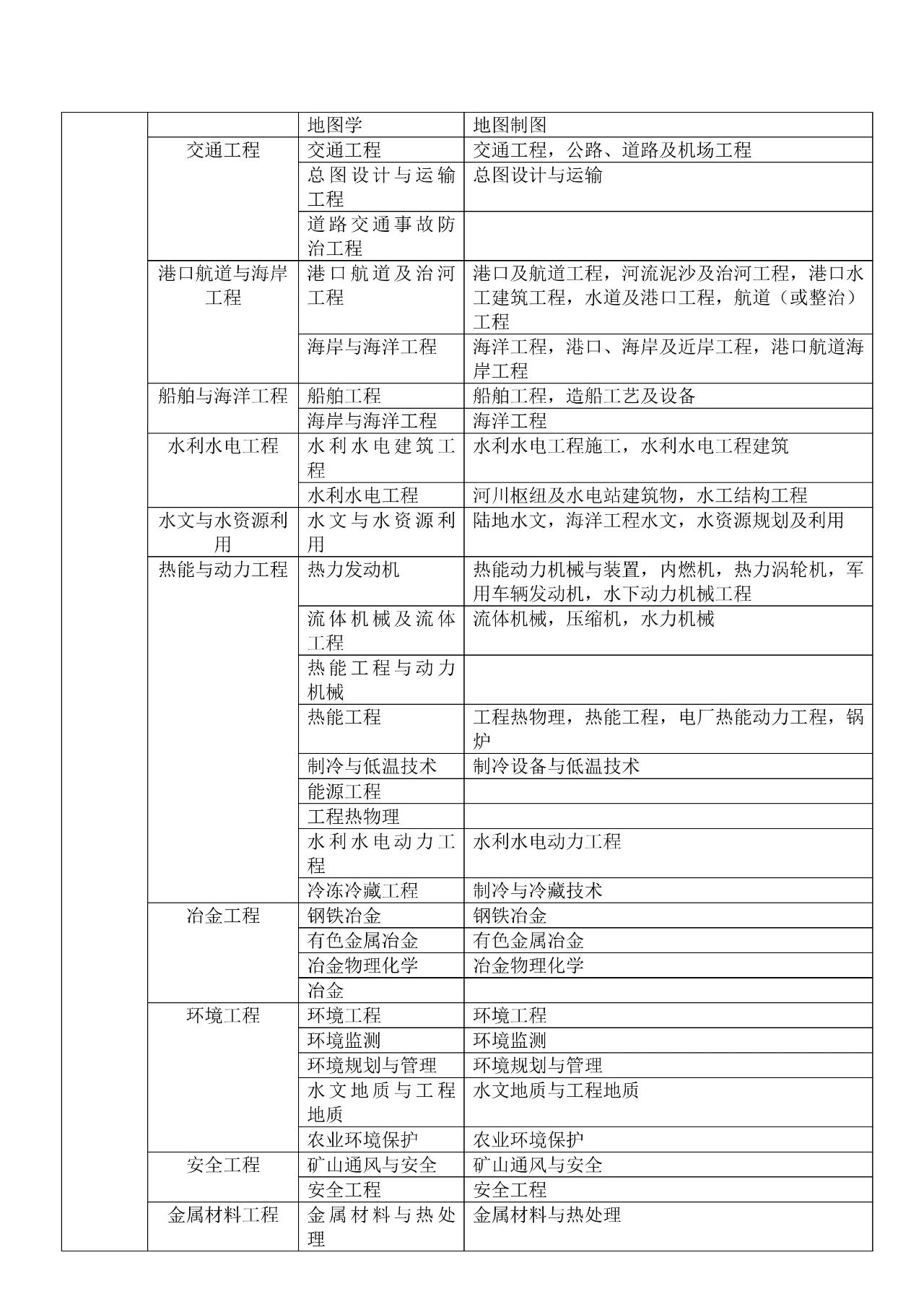 1.本表按教育部现行《普通高等学校本科专业目录新旧专业对照表》编制,共涉及“土建类、测绘类、水利类、交通运输类、能源动力类、地矿类、材料类、电气信息类、机械类、管理科学与工程类、生物工程类、化工与制药类、工程力学类”等18类45个专业,其中本专业36个,相近专业9个。