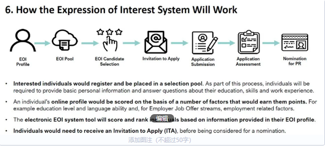 EOI的系统目前已经进入最后技术开放阶段,第一阶段会在未来几星期内开放。第一阶段将率先开放国际留学雇主担保和海外人士雇主担保这两个移民项目。