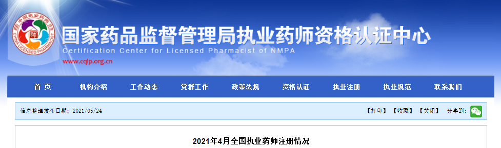 昨日,国家药品监督管理局执业药师资格认证中心公布了2021年4月全国执业药师注册情况。数据显示,4月注册执业药师大幅增加,详细情况如下。