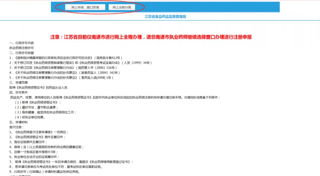 点击进入注册省份后,首先,仔细阅读该省的注册办理事项的说明,然后选择办理方式,如下图: