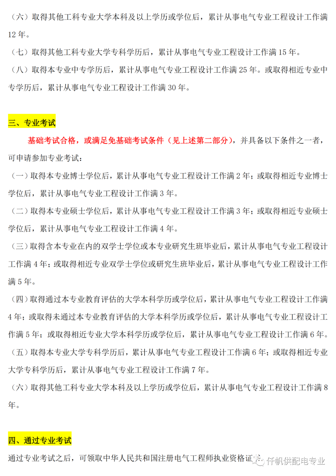 注册电气工程师执业资格考试报考条件