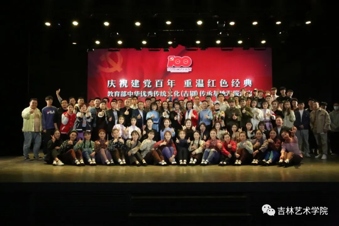 为庆祝中国共产党建党一百周年,4月26日,“庆祝建党百年 重温红色经典”——教育部中华优秀传统文化(吉剧)传承基地汇报演出在吉艺现代剧场拉开帷幕。